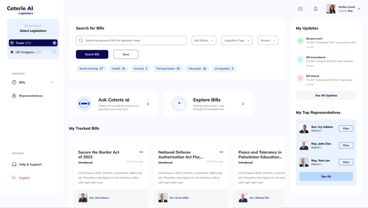 Our AI powered platform enables you to stay ahead of legislation you are tracking and others you need to keep an eye on..